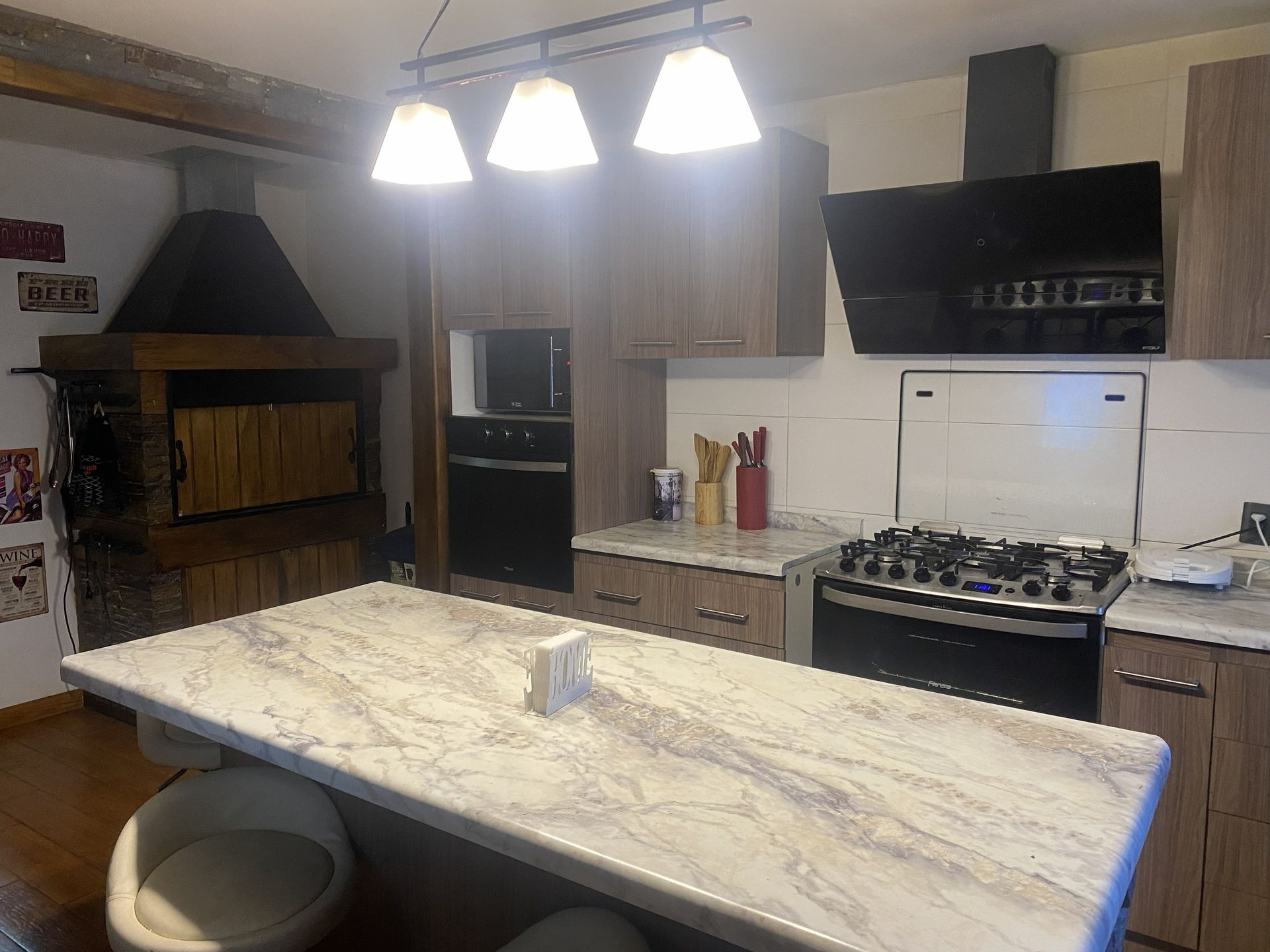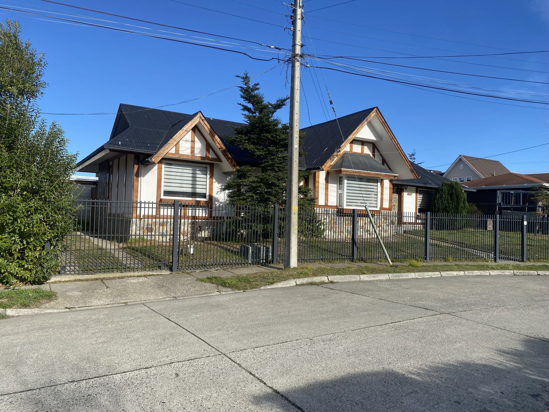 3 dormitorios, 1 baño grande, dos livings, cocina magallánica grande amoblada. 185 m2 construidos, amplio terreno y títulos saneados.